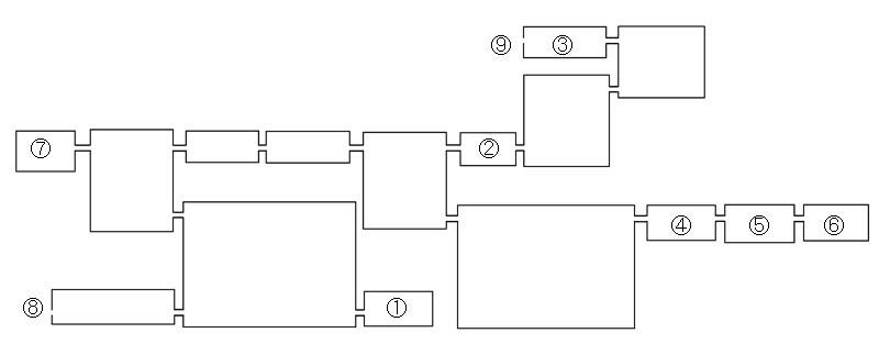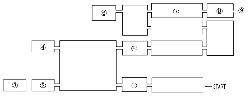 ③セーブポイント・ステータスアップ+1(二段ジャンプがないと取れません)