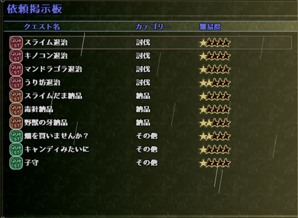 それ以外にもクエストシステムが入っていまして依頼をこなすことで報酬を受け取れます。