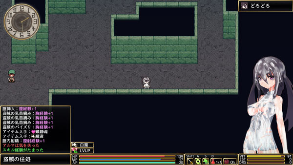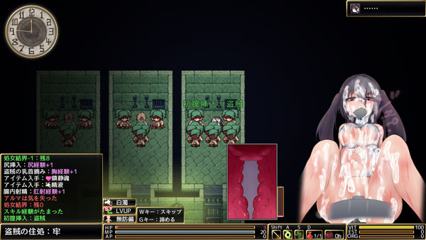 盗賊たちに囚われてもゲームオーバーにはならずに精液まみれで脱出しちゃいます。