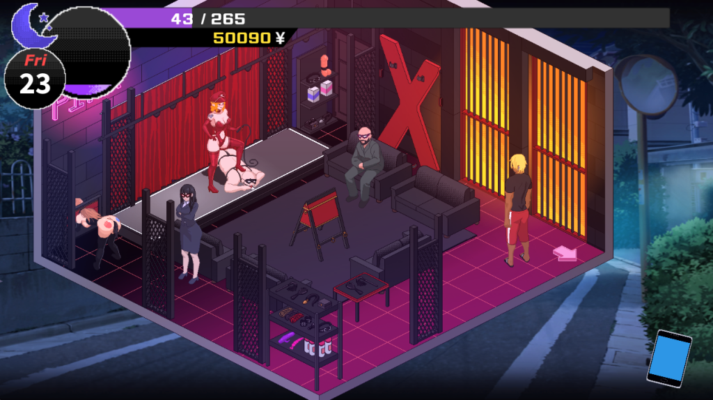 更に深夜に開いてるいかがわしいお店でおもちゃを買ったりカメラを買ったりなどアイテムを駆使して奥様を堕としていくことが可能です。