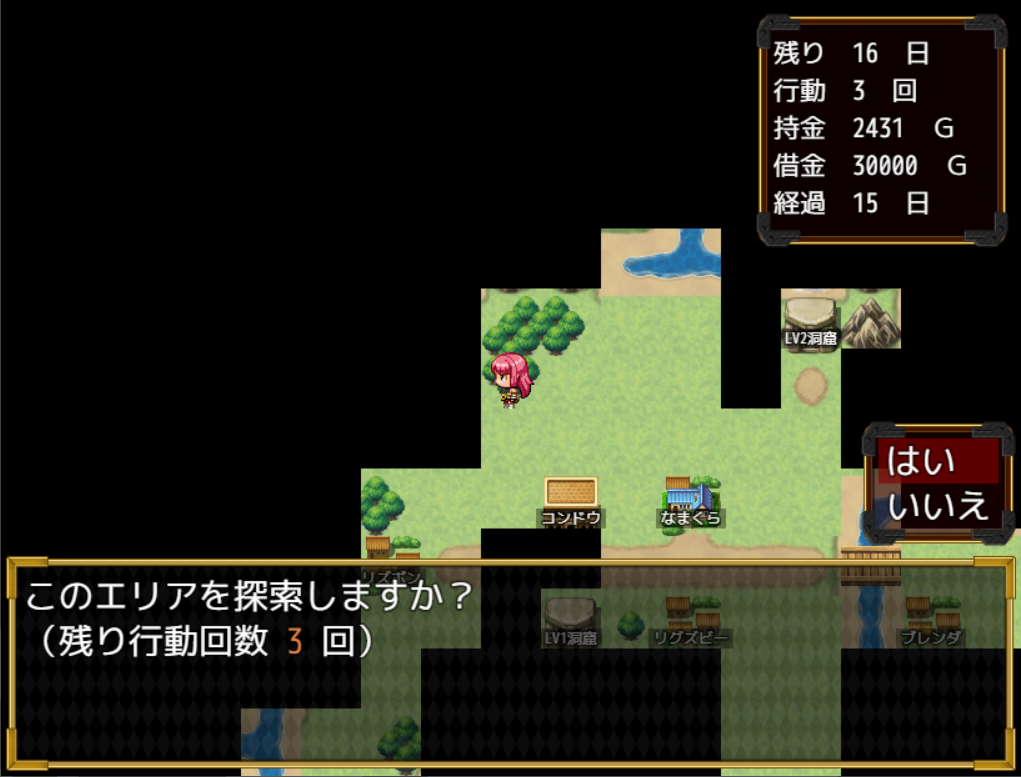最初は1日4回と行動できるのですがそれを使って自分のお店の周りを探索して行動半径を広げないといけません。