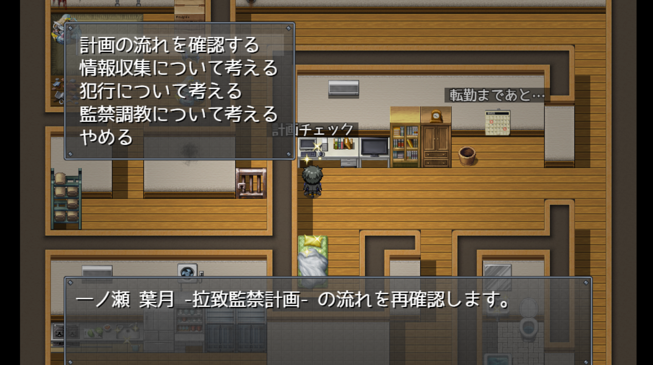 普段はRPGの画面で情報を集めたりアイテムを買ったりして少しずつ犯行を成功させるために行動します。