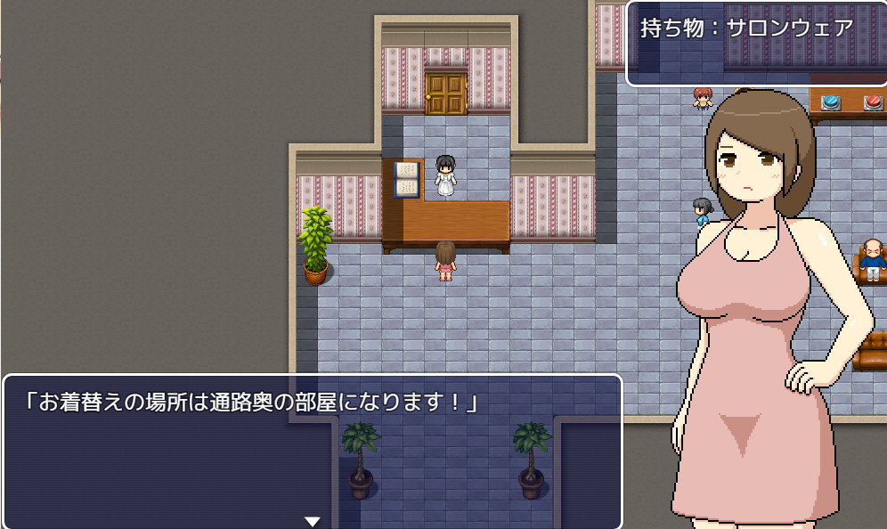サロンの人と会話して奥の部屋で「サロンウェア」に着...
