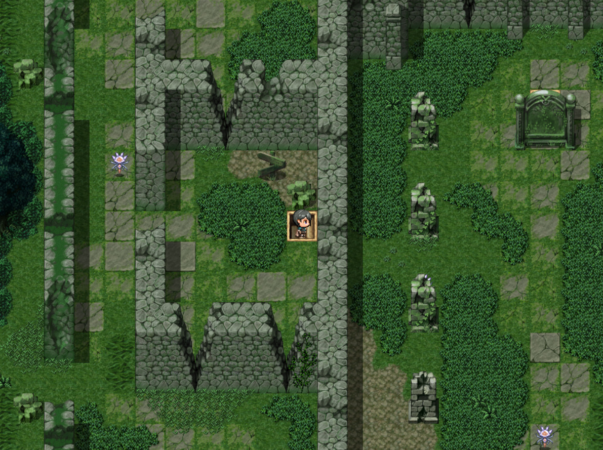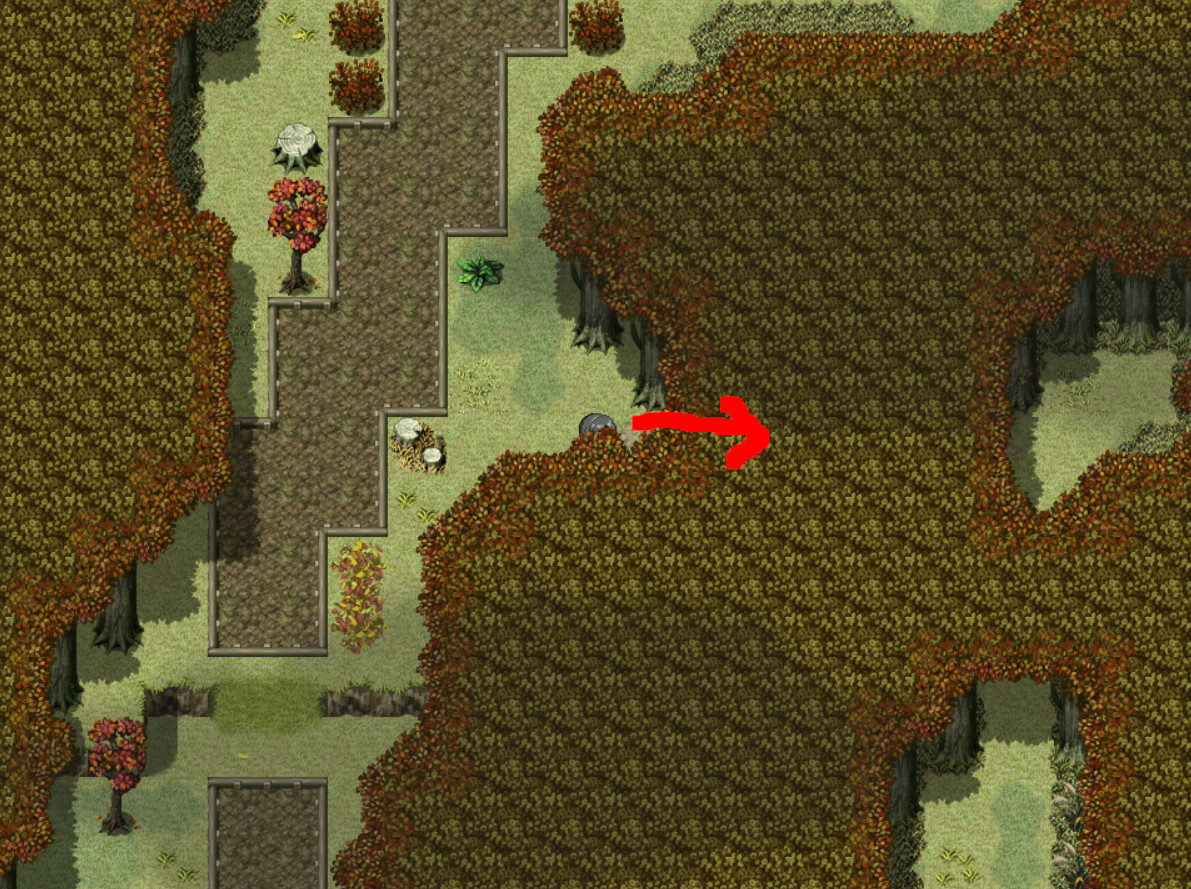 分かれ道を東に行く道中の宝箱はそのままでは取れませんが隠し通路から取れます
