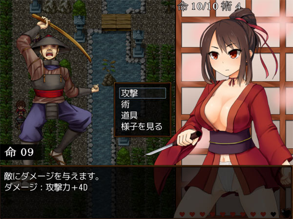自分はRPGツクール系のゲームはマウスでプレイ出来なかったりするので好きではないのですがこのくノ一牡丹は作者様の工夫が随所にあって感心します。