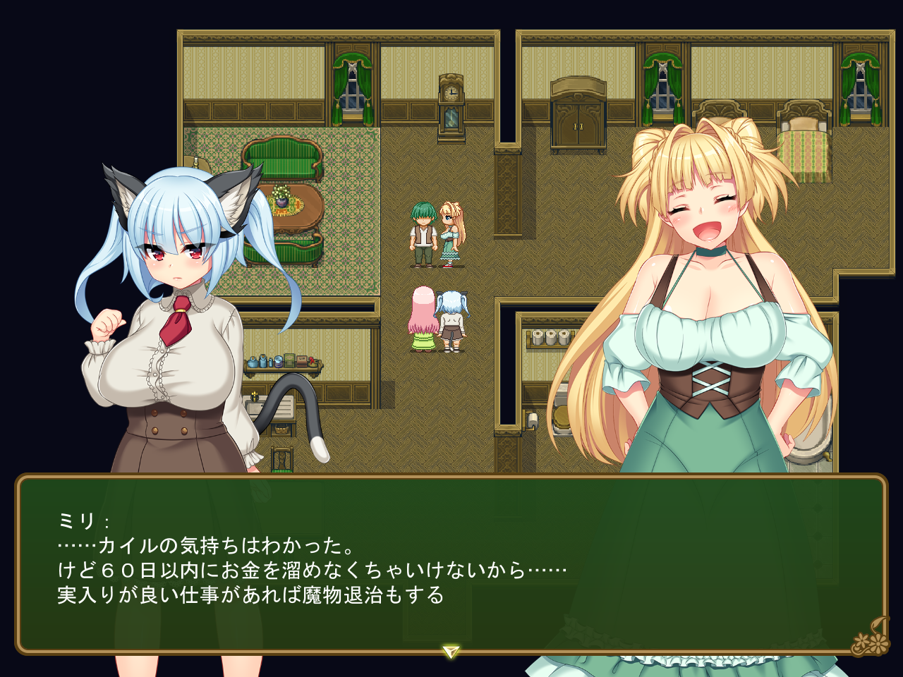 愛する夫と町で暮らす為に60日間で100Gを貯めるために奮闘するというのが物語の趣旨です。