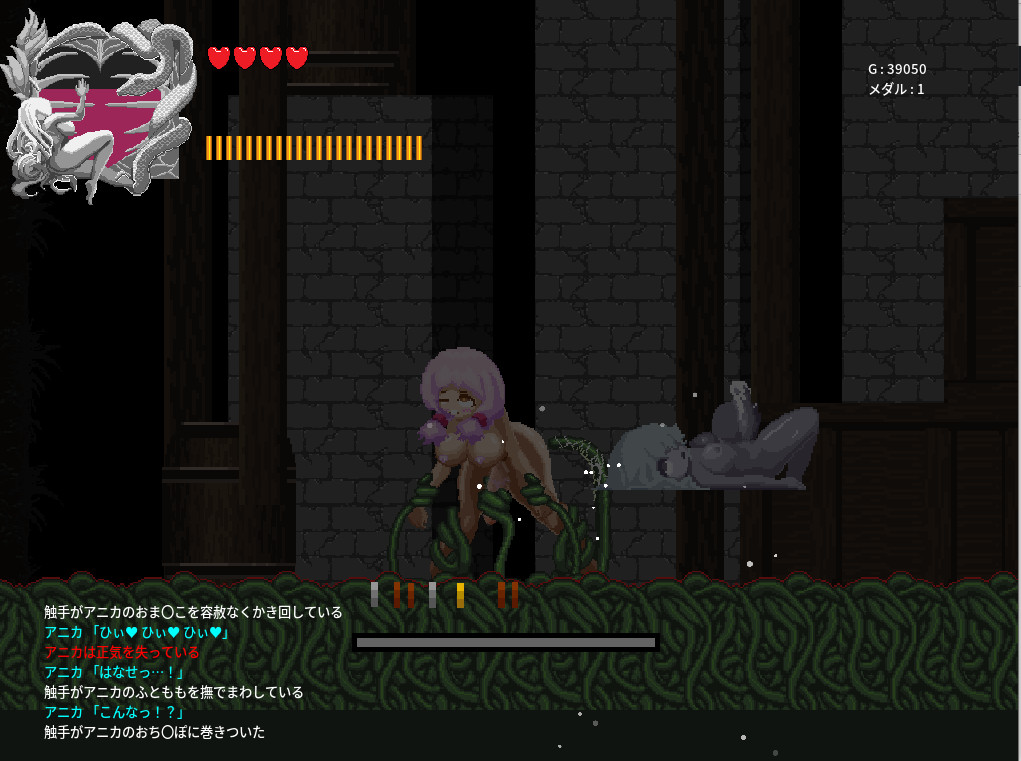 キャラクターがダメージを受けて服が無くなってからダメージを受けるとエロドットアニメーションが入ります。